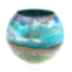 Original acrylic abstract seascape painting on the inside of an extra large glass vessel. Each unique piece is hand painted and signed by artist Darren Cole in his studio on the Isle of Harris.